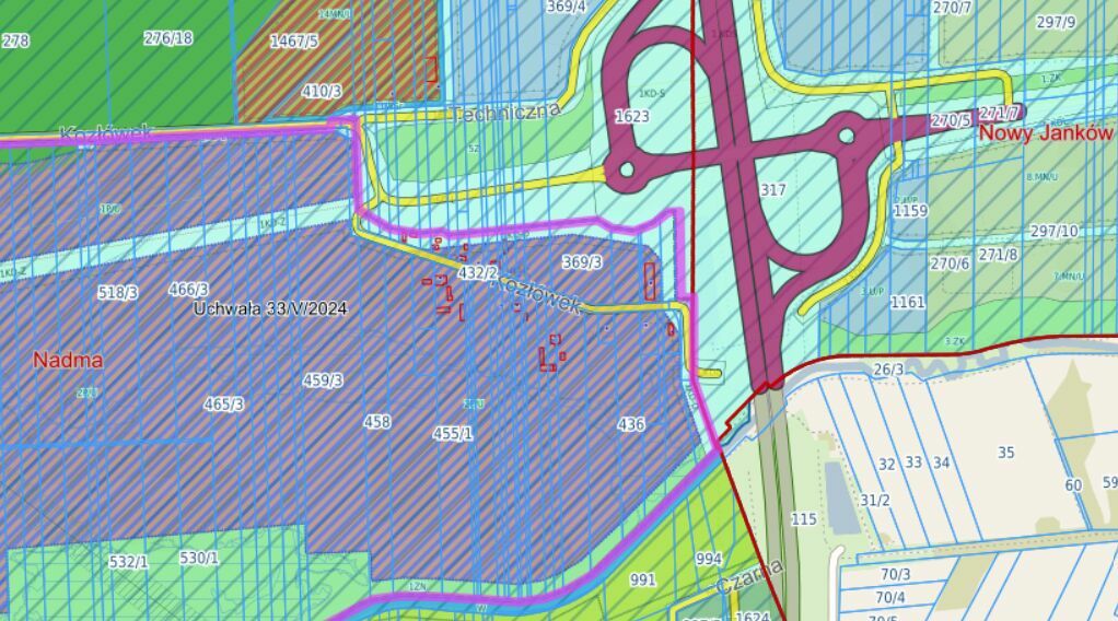 Czysta karta pod budowę: Teren objęty planem miejscowym pod magazyny. Brak protestów społecznych – sąsiedztwo to tereny niezabudowane i rolne.